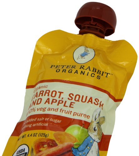 - CERTAIN CONTENT Peter Rabbit Organics, Carrot, Squash and Apple Puree, 4.4-Ounce Pouches (Pack of 10) THAT APPEARS ON THIS Â COMES FROM AMAZON EU. THIS CONTENT IS PROVIDED AND IS SUBJECT TO CHANGE OR REMOVAL AT ANY TIME.